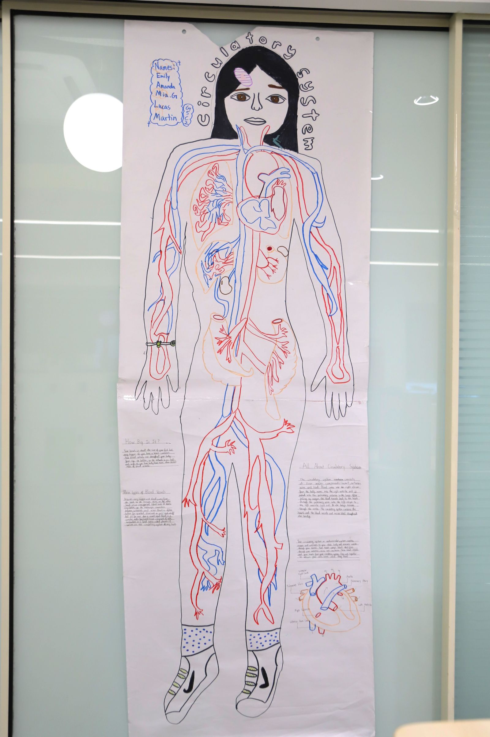 In the Grade 5 unit Human Body Systems, students undertook in-depth inquiry from structural understanding to functional exploration. Using images, models, and videos of digestive, respiratory, and circulatory systems, they applied the See–Think–Wonder routine to record observations and pose questions such as How do the heart and lungs work together? Working in groups, they selected one system for deeper research, collaboratively creating clear 3D models, drawing proportionally accurate system diagrams, and precisely labelling key organs such as alveoli and ventricles. In the final presentation, students confidently became science explainers, vividly illustrating system functions and interconnections for peers and parents using models and diagrams.