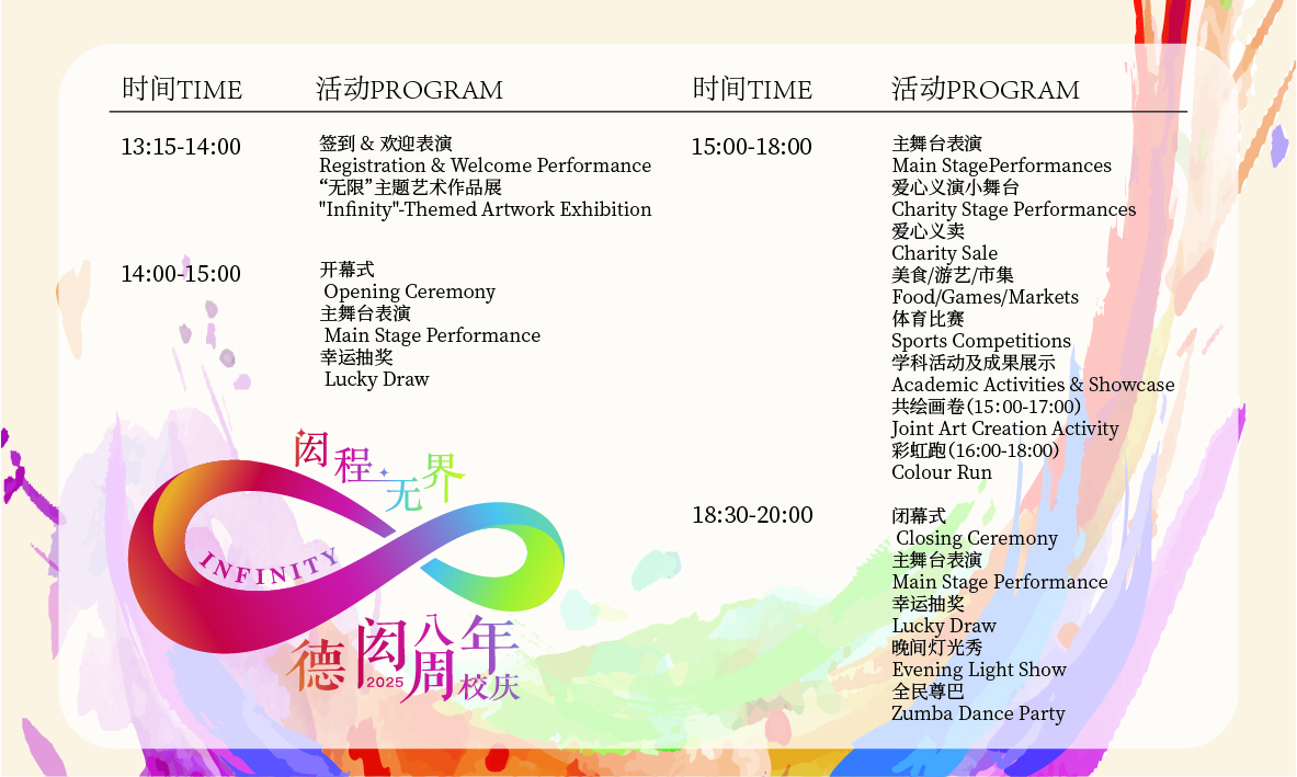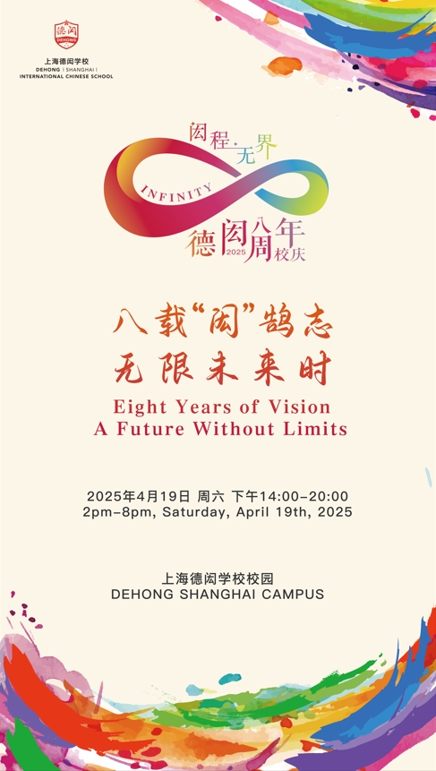 Eight Years of Vision, A Future Without Limits. Through this celebration, we aim to look back on Dehong’s extraordinary journey, showcase the vibrant spirit of our community, reaffirm our educators’ dedication to our educational mission, and express our aspirations for the future of Dehong Shanghai.