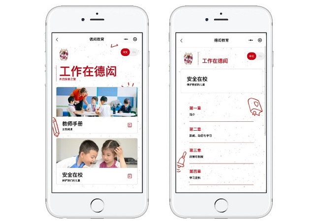 2019年8月,德闳学校的所有中外籍教师齐聚西安,进行了一整天安全在校的深度学习,除此之外,德闳教育的其他员工就这一主题也进行了专业培训。但为了让德闳教育的每一位成员包括董事会、学校管理团队、中外籍教职员工,以及家长、学生、甚至关注支持德闳发展的人,都能随时随地的对德闳“安全在校”条例进行自主学习,我们还专门开发了一个德闳教育微信小程序。