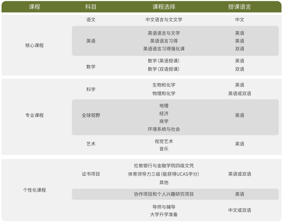 85%的时间为英文教学,15%的时间用中文授课。随后,在11、12年级正式启动IBDP课程。