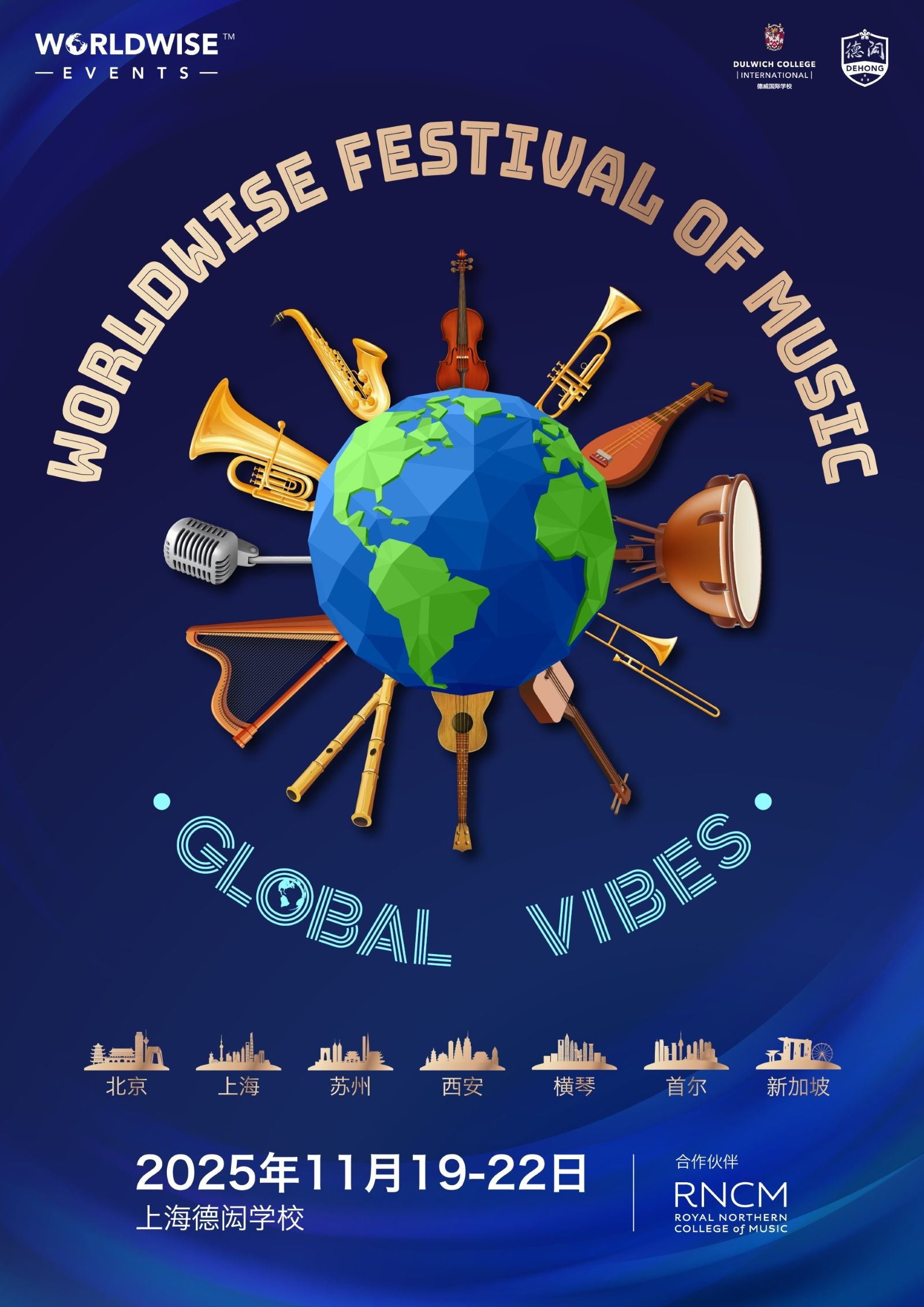 本次WFM 以“全球共鸣(Global Vibes)”为主题。在为期四天的紧密排练、合作共创与多元演出中,来自全球姐妹校的音乐爱好者将一同探索节奏、和声与创意如何打破文化边界,共谱跨越国界的华美乐章。